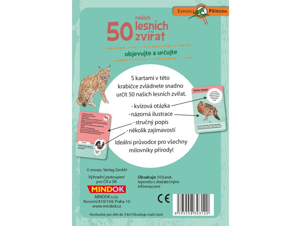 Díky kartám v této krabičce zvládnete hravě určit 50 zvířat, žijících ve volné přírodě. Na kartách najdete kvízovou otázku, názornou ilustraci, základní informace a také několik zajímavostí. Ideální průvodce pro všechny milovníky přírody!